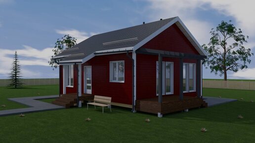 Одноэтажный каркасный дом в современном стиле, для проживания семьи из 3х человек