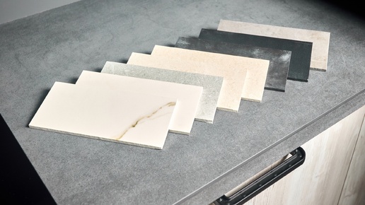Один из самых популярных материалов последних лет-это керамогранит крупных размеров, т.е. больше 1 метра по ширине и высоте. Конечно же плюсов у такого материала много - небольшое количество швов, имитация натурального камня, большое цельное полотно, которое можно использовать в отделке стен и пола. Так же широкоформатный керамогранит отлично используется и в качестве столешниц для кухни или даже в фасадах мебели, если его толщина 5 мм. Широкоформатный керамогранит есть в нескольких размерных группах: 800х2400 мм , 1200х2400мм, 1200х3200 мм, 1000х3000мм, 1500х3000мм -