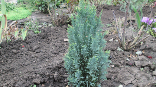 Продолжаю рассказ о кипарисовиках. Кипарисовик Лавсона "Элвуди" купила 10 см высотой из микса. Хвоя у этого кипарисовика очень мягкая, пушистая. Когда я начала выращивать кипарисовики, я записывала, на сколько они вырастут за сезон. Уже в дальнейшем мне это пригодилось , чтобы знать где и как их посадить и чего ждать в дальнейшем. В саду растут 4 кипарисовика "Элвуди". Позже ещё купила. Обратите внимание на каком расстоянии я сажала хвойные. Кажется, что пусто и надо ещё что-нибудь посадить...