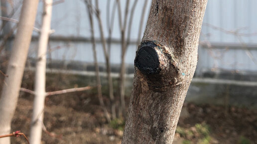 Мелкие срезы на веточках обычно не обрабатываю, а для срезов побольше есть садовый вар...