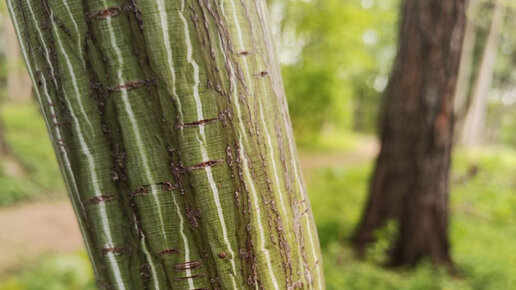 Для многих осень – это разноцветный букет кленовых листьев. Но не все клены осенью разноцветные, а у некоторых есть особенности поинтереснее листвы. Сегодня мы поговорим о клене с самой необычной корой. Его легко узнать даже зимой – вот уж, в самом деле, яркая индивидуальность. И даже название у него говорящее – клен зеленокорый. Интересно, что такую удивительную окраску коры можно увидеть не только на молодых побегах, как это часто бывает у других растений. Малахитовую зелень с эффектными светлыми прожилками демонстрируют стволы взрослых деревьев...