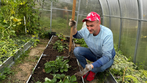 Посадили осенью клубнику в теплицу, мечтая о майском урожае. Результат через полгода