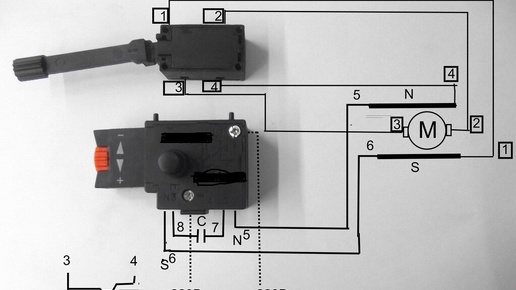 Схема подключения кнопки для дрели с реверсом.
