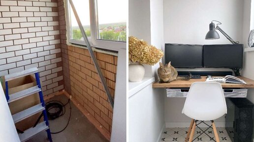 Как на балконе 3,5 м² оформили уютный кабинет с зоной отдыха (фото до и после)