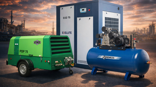 Покупка компрессора – это отнюдь не вопрос конкретной марки или цены. От правильного выбора зависит стабильность пневмоснабжения: будет ли инструмент получать нужное давление, не перегреется ли мотор и насколько дорого обойдется обслуживание. Давайте разберемся, чем отличаются электрические, бензиновые и дизельные компрессоры, как они устроены и какой тип оборудования лучше выбрать под конкретные задачи. Независимо от типа приводного двигателя, принцип один и тот же: устройство всасывает атмосферный воздух, сжимает его и подает под давлением к пневматическому инструменту или оборудованию...