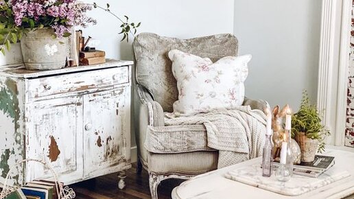 При декорировании интерьера в стиле Прованс важна каждая деталь. Коврик, ковер - это тот ключевой элемент, который объединяет пространство и придает ему особый шарм. Давайте рассмотрим реальный интерьер в стиле Прованс: Мы видим приглушенные цвета, состаренную мебель, металлическую корзинку с книгами, цветы в ведре, плед и подушка с цветочным принтом в кресле. Это все детали провансальского декора. Ковер фактически незаметен, но он объединяет всю композицию. Важен его цвет и материал изготовления...