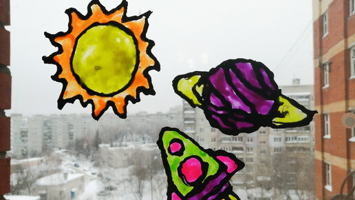 Украшаем окна самодельными наклейками. Рисуем витражными красками.