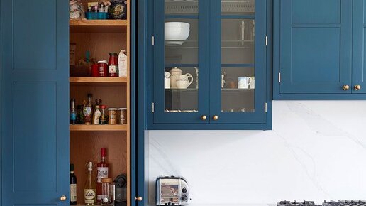 Синий цвет идеально подойдёт для тех кухонь, окна которых выходят на южную сторону...