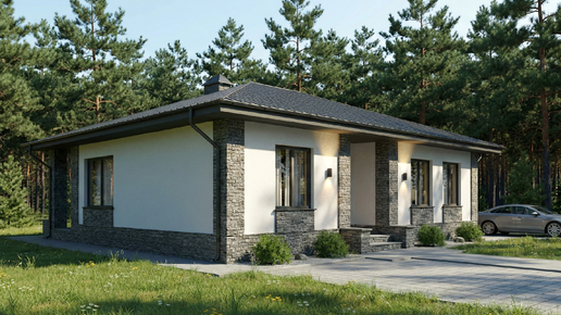Современный одноэтажный дом с продуманной планировкой для комфортной жизни. Этот одноэтажный дом спроектирован как удобное и функциональное пространство для постоянного проживания за городом. Архитектура дома лаконична и современна, а планировка продумана до мелочей, чтобы обеспечить максимальный комфорт и удобство для всей семьи. Просторная кухня-гостиная с выходом на террасу формирует центр дома и пространство для отдыха всей семьи. Мастер-спальня с собственной ванной, две изолированные...