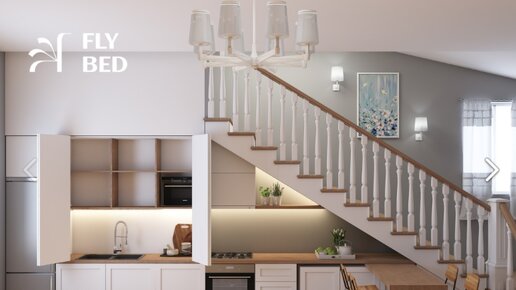 Сегодня хотим вам показать кухню под лестницей, разработанную нашим дизайнером. Такая кухня не только сэкономит драгоценные метры, а также у вас появится больше возможностей для повседневных дел.