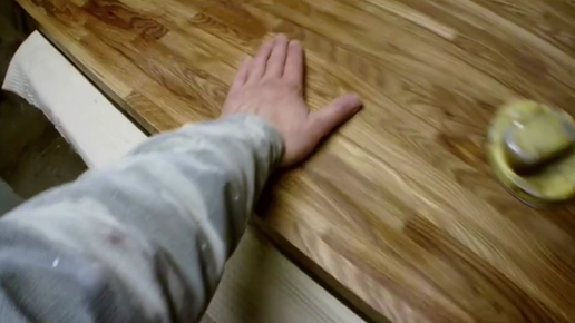 Изготовление кухонного гарнитура из дерева. Покрытие лаком столешниц из дуба
