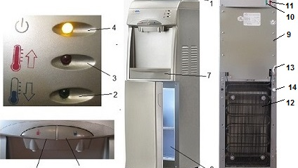 Кулер для воды это аппарат для нагрева или охлаждении питьевой воды. В состав аппарата входит корпус, в верхнюю часть которого вставляется бутыль с чистой водой . Корпус оснащен двумя краниками, предназначенными для подачи холодной и горячей воды, есть модели с одним, с тремя краниками. Внутри корпуса расположена распределительная система, состоящая из трубок и патрубков, а также двух резервуаров: верхний, который используется в качестве охлаждающего , и нижний, в котором происходит нагрев воды...