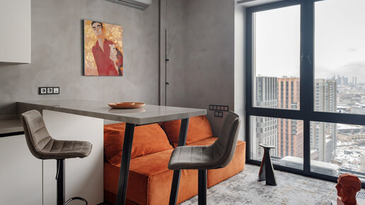 Квартира под сдачу в ЖК «Метрополия» — штукатурка, оранжевый цвет и картина с чихуахуа