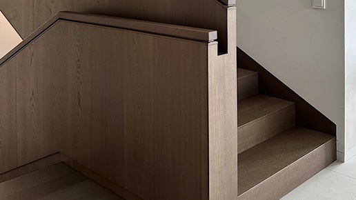 В просторном доме лестница редко остается лишь функциональным элементом. Она формирует первое впечатление, задает стиль и даже влияет на восприятие пропорций пространства. Когда гости переступают порог, их взгляд неизбежно притягивает эта конструкция - геометрия линий, игра света, идеальные соотношения элементов. В реализованном проекте с 4-хмаршевой конструкцией удалось достичь того баланса, когда доминантная лестница визуально не утяжеляет интерьер. В этом проекте она встречает гостей сразу при входе — ровные линии, натуральный шпон и подсветка создают эффект театрального света...
