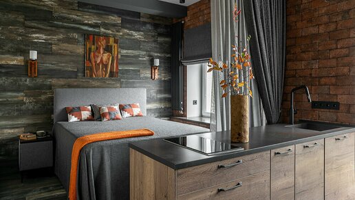 Лофт-студия 32 м², в которой уместили все — и даже гостевой санузел