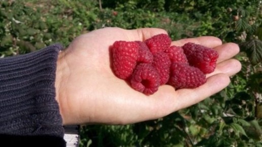 Ремонтантная малина сорт Геракл. Обратите внимание на обрезку ремонтантной малины