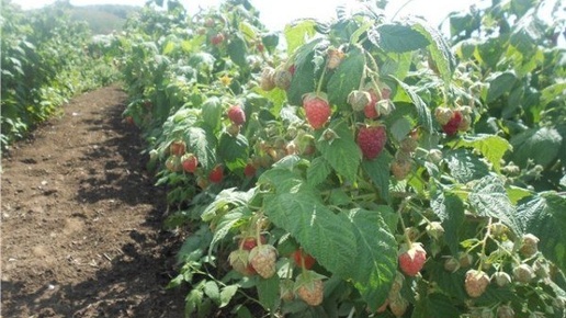 Ремонтантная малина сорт Геракл. Обратите внимание на обрезку ремонтантной малины