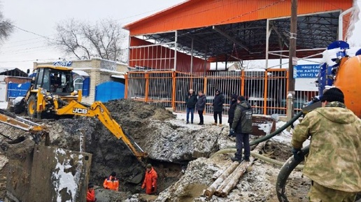 «Астрводоканал»: на месте прорыва магистрального водовода установлен ремонтный хомут