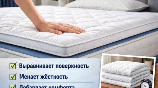 Вы просыпаетесь с ощущением усталости? Чувствуете, что ваш старый матрас уже не обеспечивает нужной поддержки? Есть простое и доступное решение — матрас‑топпер. Давайте разберёмся, что это за изделие и почему оно может стать настоящим спасением для вашего сна. Матрас‑топпер (от англ. topper — «верхний слой») — это тонкий дополнительный матрас, который укладывается поверх основного спального места. Его толщина обычно составляет от 3 до 10 см. Это не полноценный матрас,...