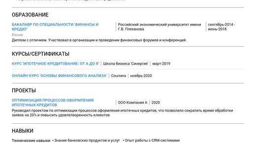Пример резюме менеджера по ипотечному кредитованию 2025