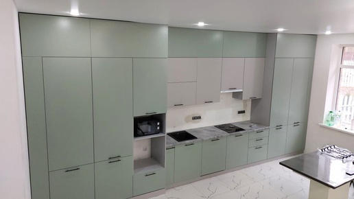 🌿 Нежная мятная кухня с продуманным дизайном Представляем проект прямой кухни в мятно-белой гамме, где каждая деталь продумана до мелочей! 🌟 Особенности 1. Светлая палитра создает ощущение свежести и визуально расширяет пространство, добавляет глубины. 2. Умная организация пространства - Встроенный технический шкаф скрывает коммуникации. - До потолка - максимум полезного объема. 3. Практичность в деталях - Ударопрочные фасады...