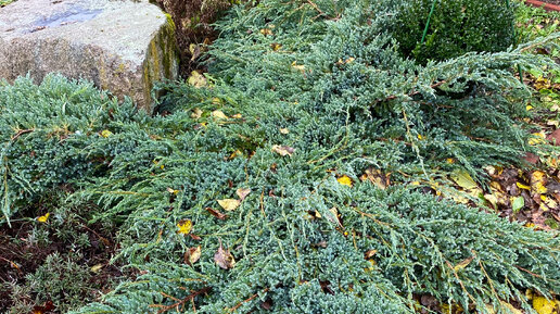 Четыре года назад я посадила два маленьких можжевельника Блю Стар (Blu Star) и Блю Карпет (Blu Carpet). Про Блю Стар было написано, что он очень медленно растет и это действительно так. А вот про рост Блю Карпет как-то ничего не было написано, а вот он растет со страшной скоростью. Сейчас длина от кончика одной ветки до другой составляет около двух метров. Этакое громадное зеленое чудище вымахало. «Страшное, но ужасно симпатишное», как говорил Карлсон про себя в роли привидения. В принципе, «размах крыльев» Блю Карпета меня не особо смущает, если бы не одно «но»...