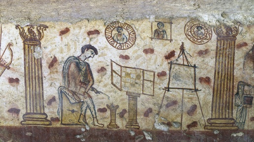 Мольберт - это слово пришло к нам из немецкого языка. Оно образовано от слова malbrett, что дословно переводится как "доска для рисования" (malen - рисовать, brett - доска). Согласно школьному этимологическому словарю заимствование в русский произошло примерно в XIX веке. Толковый словарь Даля описывает мольберт как "станок, треножник живописцев". Всевозможные подставки для удобства рисования использовались человечеством с незапамятных времен. Нечто похожее можно встретить на древнеегипетских фресках...