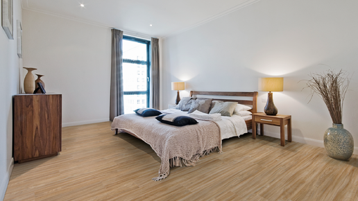 Главная задача при ремонте в спальне — создать комфортное и безопасное пространство для отдыха. Как выбрать напольное покрытие, которое поможет решить эту задачу, читайте в статье. В спальне, как правило, нагрузка на напольное покрытие крайне низкая. По комнате не ходят в уличной обуви — и вообще ходят нечасто. Не роняют на пол острые ножи и тяжелые горячие сковородки, не двигают по нему столы и стулья. Поэтому оценивать материалы с точки зрения износоcтойкости и долговечности нет смысла — даже бюджетные полукоммерческие покрытия 31-го класса эксплуатации прослужат в спальне 15 лет и больше...