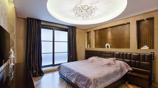 Натяжной потолок в спальне: простые и оригинальные варианты оформления (85 фото)