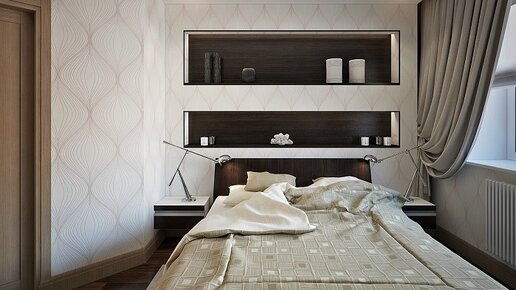 Спальня в нише 3,9 квадратов! Предусмотрели места для хранения, все виды освещения и даже вентиляцию. Как вам?