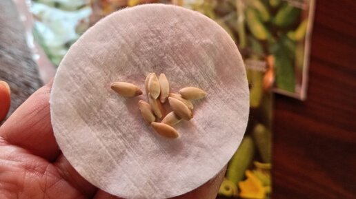 Семена огурцов перед посевом на рассаду калибрую. То есть отбираю только полные семена, чтобы не посеять пустые семена и зря ждать всходов. А также семена обрабатываю от возбудителей болезней, поскольку огурцы болеют мучнистой росой. А еще семена огурцов можно замачивать в стимулирующих раствора. Расскажу подробнее о каждой процедуре, которую провожу переде посевом огурцов. Как калибрую семена огурцов. Семена огурцов калибрую в солевом растворе. Для этого в 1 литре воды развожу 3 ст. л. соли. Как только соль растворится семена высыпаю в этот раствор и хорошо перемешиваю и выдерживаю 5 минут...