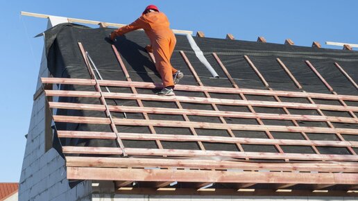 Крыша своими руками. Часть 3//Установка скользячек//Обрешетка крыши//Крыша под усадку//Баннер вместо рубероида
