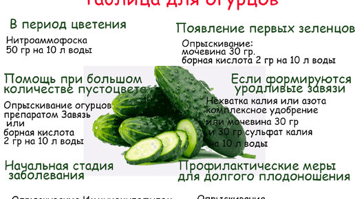Таблица подкормки огурцов