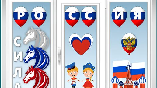 Оформление окон ко Дню России + флажки. Акция «Окна России» (праздник День России 12 июня)