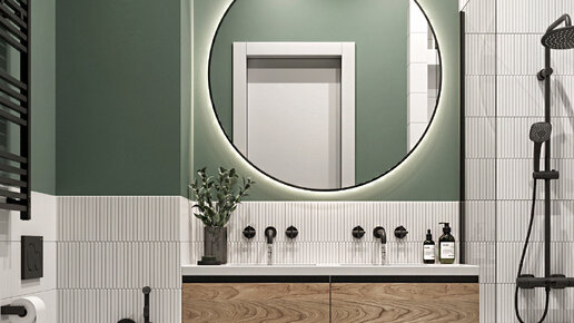 Ванная комната в оливково-белых тонах для многодетной семьи