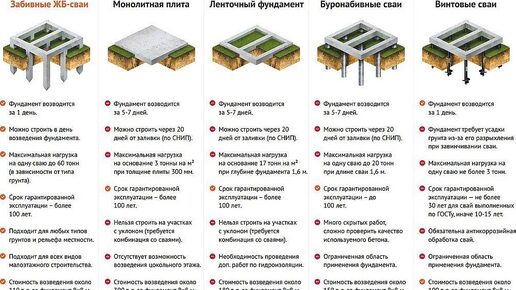 Фундамент — основа дома, влияющая на его долговечность и стойкость. Выбор фундамента зависит от грунта, климата и конструкции, и обязательно делаем Геологию. (ИГИ) 1. Ленточный фундамент. Популярный выбор для домов на стабильных грунтах. Такой фундамент рекомендуется для кирпичных и деревянных зданий, а так же Газоблок и прочие блоки с ячеистыми порами. 2. Плитный фундамент. Отличается высокой надёжностью и используется на слабых грунтах. Плита распределяет вес и обеспечивает устойчивость. 3...