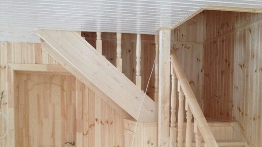 Внутренняя отделка 2 этажа дома вагонкой. Лестница