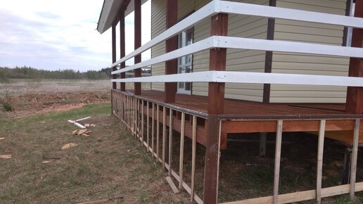 Дом на сваях. Отделка цоколя. Правильная обрешётка.