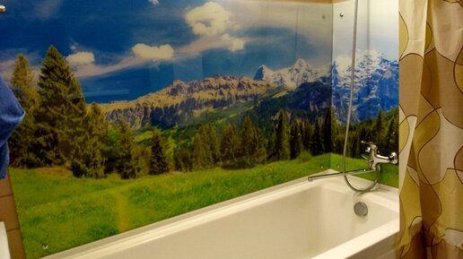 Установили декоративное стекло на стене над ванной для защиты покрытия от влаги