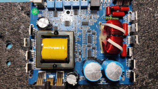 Принесли в ремонт после случайной переплюссовки усилителя На первый взгляд нечего горелого не обнаружено , разве ,что сразу бросились в глаза вздутые конденсаторы и пробитый диод признанный защитить в случаи переплюссовки В результате диагностики было выяснено , что частично неисправен выход УМЗНЧ , в преобразователе ключи остались целы и микроконтроллер уцелел , а вот драйвер раскачки пострадал и требовал замены для запуска цепи преобразователя. Микросхема драйвера C2 (UCC27524) , была замена...