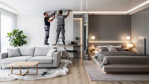 глянец блестит, как зеркало, и комната оживает. В компании Потолки Всем мы такие чудеса творим под ключ: от замера до