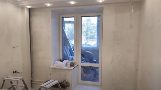 Итак, мы имеем установленную оконную конструкцию. Предпочитаю, при отделке ступени под дверью использовать плитку. В нашем случае имеем кирпичный дом, по стенам уложена теплоизоляция 80 мм слоем, и под будущей ступенью имеется слой утеплителя...