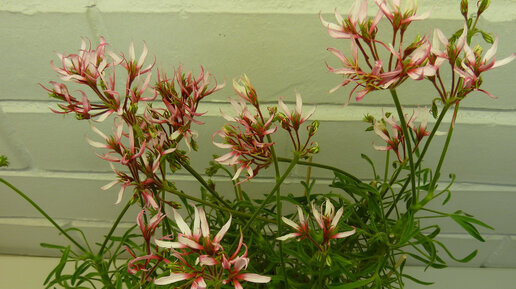 Это, наверное, самая необычная пеларгония. Изначально была отнесена к группе формозумов, но сейчас ее выделяют отдельной группой. Листочки у этих растений тонкие и длинные, цветы с игольчатыми лепестками. Листья могут быть светлыми и темными, иметь выраженную зону или нет. Эти пеларгонии имеют достаточно компактные размеры, хорошо переносят прямые лучи солнца (при условии принятых мер защиты корневой от перегрева), сильные ветра, дождь...