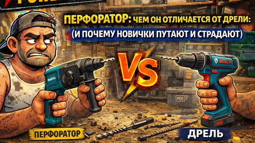 Новичок берёт “дрель перфоратор”, включает удар, упирается в бетон — и ждёт чуда.