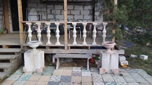 Пару лет назад сделал своими руками террасу. Но перила сразу не установил. В то время я работал в фирме, которая занималась декоративными бетонными изделиями. И наш технолог посоветовал мне установить бетонные балясины. Честно говоря, я и не думал, что так делают. Но решил попробовать. Что получилось в итоге покажу ниже. Деревянная терраса Деревянную террасу я делал один в свободное от работы время. В общей сложности на это у меня ушло пару месяцев. Кстати, этим занимался первый раз в своей жизни...