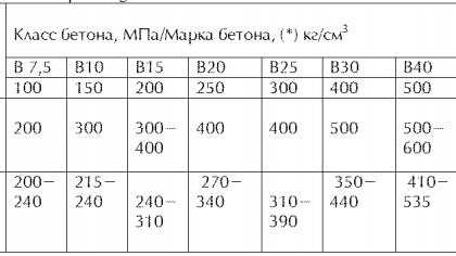 Таблица марок и класс бетона по прочности на сжатие Цементные растворы и бетоны можно готовить на стройплощадке. Рекомендуется в их состав включать добавки для увеличения пластичности, ускорения схватываемости и снижения водопроницаемости. Для получения бетона требуемого класса по прочности на сжатие, рекомендуется использовать следующие марки и количества цемента: В процессе хранения цемент теряет свою активность. Расход цемента в таблице указан для цемента со сроком хранения не более двух месяцев...