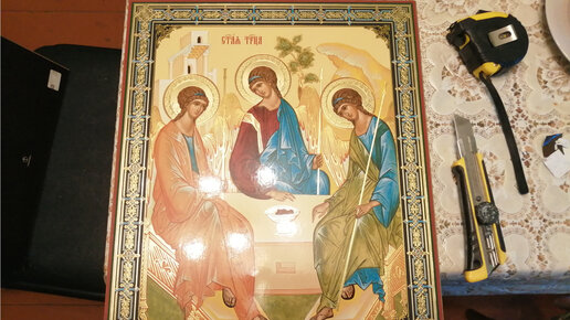 Здравствуйте. Возможно, Вы сталкивались с ситуацией, когда, купив картину или репродукцию, оказывается, что на ней отсутствует петля для крепления на стену. Сегодня, я хочу рассказать Вам, как просто и быстро сделать надежный подвес для крепления картины к стене. Для разметки и установки подвеса на картину мне понадобится: Картина состоит из трех слоев. Верхний слой - ламинированное изображение, средний слой - МДФ, задний слой тонкая ламинированная бумага. Из-за такого состава материалов, к картине невозможно прикрепить подвес при помощи гвоздей, скотча и других распространенных фиксаторов...