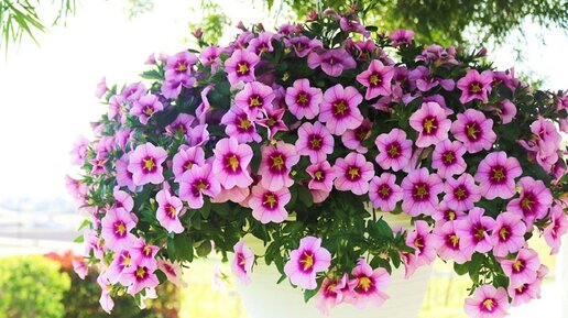 Калибрахоа (Calibrahoa) — роскошный многолетник, напоминающий обычную петунию, с яркими, крупными цветками. Неприхотливую культуру легко выращивать в открытом грунте. Но привлекательнее всего ампельное растение смотрится в напольных вазонах, специальных контейнерах (на балконах, подоконниках) и в подвесных кашпо. Характерные особенности растения Красивый, ярко цветущий многолетник из семейства Пасленовые завезен в Европу из Центральной и Южной Америки. Растение с пышной, раскидистой (до 40-50 см) кроной в естественной среде формирует бутоны фиолетового оттенка...