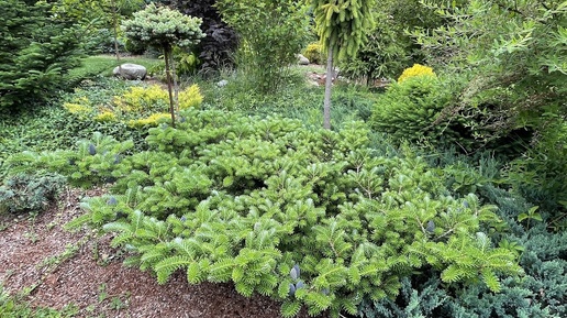 Пихта корейская Грин Карпет Abies koreana Green Carpet. Когда начала заниматься садоводством, то мой мозг был девственно-чистый от названий растений. Ничего не знала. Ну знала, конечно, что есть ели, берёзы, розы и остальные растения, которые у нас на слуху. Но вот что бывают видовые, сортовые - нет. Что-то слышала, но уж латинские названия и вообще для меня были откровением. Стала вникать и оказалось, что у многих растений разного вида названия совпадают. Такая подстава! Только что-то запомнишь, а тут раз — это и не ель, а сосна...