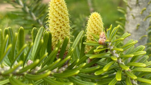 Пихты - великолепные деревья! У них красивая ярусная крона, плоские треугольные лапы, мягкая хвоя. Есть три вида пихт, которые выглядят очень необычно - настолько они не похожи на привычные ели с соснами и на другие пихты Пихта цельнолистная (Abies holophylla) Восхитительная пихта с Дальнего Востока. Это пихта-исключение, единственная пихта с колючей хвоей. Вид у нее поразительный. Прошлогодняя хвоя черно-зеленая, блестящая, очень длинная и сильная . Свежие побеги весной нежные, салатовые, и этот контраст делает дерево нарядным...